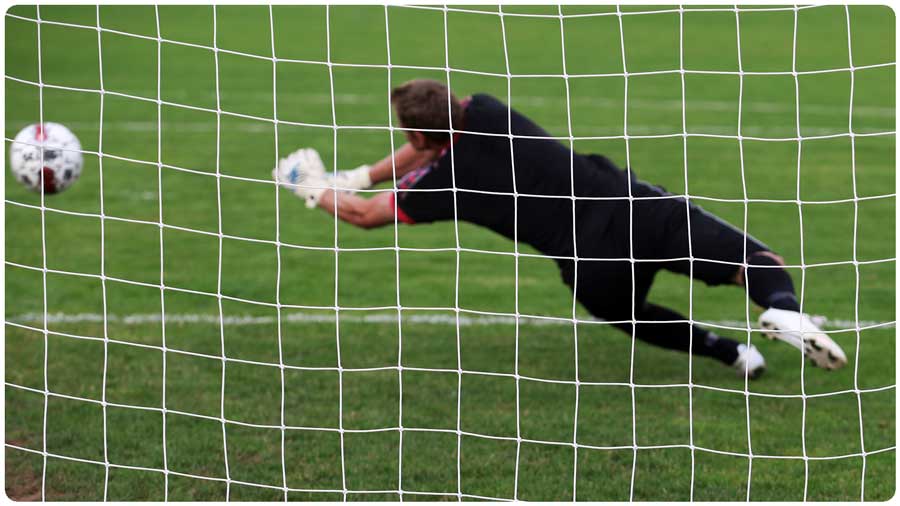 One of the most important goalkeeping attributes is fast reflexes. When strikers are firing shots from close range through a packed penalty area, the keeper needs to be on their toes and react quickly, particularly if the shot is deflected.