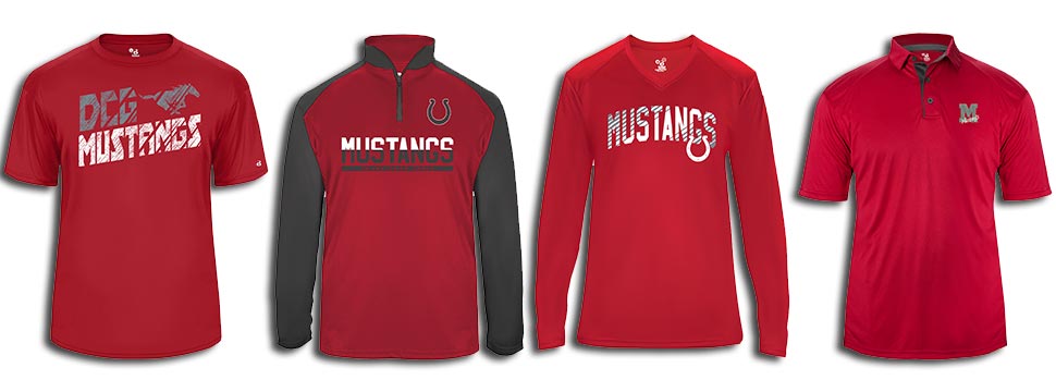 The leader in spirit wear apparel collections is Badger Sport. Badger offers several collections that include the most popular garment types, such as short- and long-sleeve t-shirts, hooded and crew-neck sweatshirts, as well as polos, quarter zips, and tank tops.